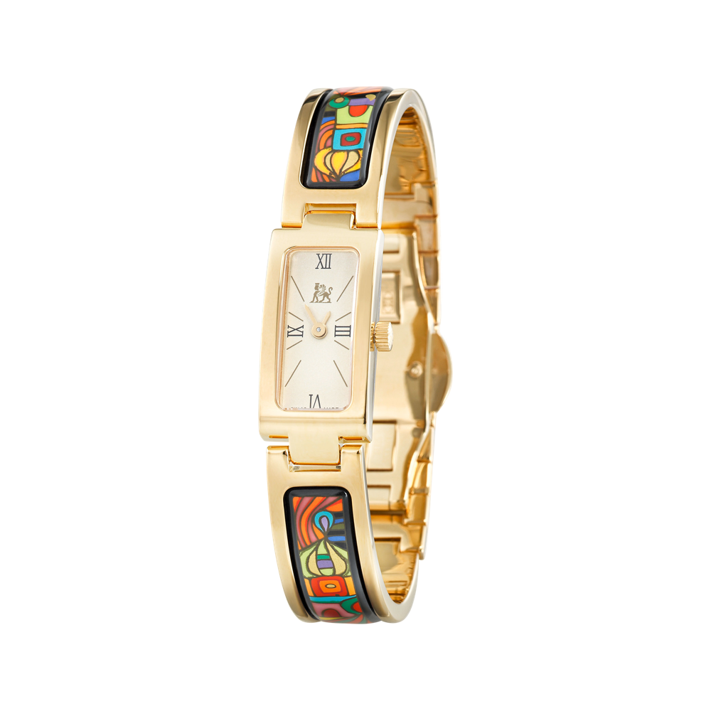 Gehäuse und Armband aus Feueremail/24 Karat Gold-Dekor, Zifferblatt/weiss, 3,0 bar (30,0 m), Hommage à Hundertwasser - 10002 Nights