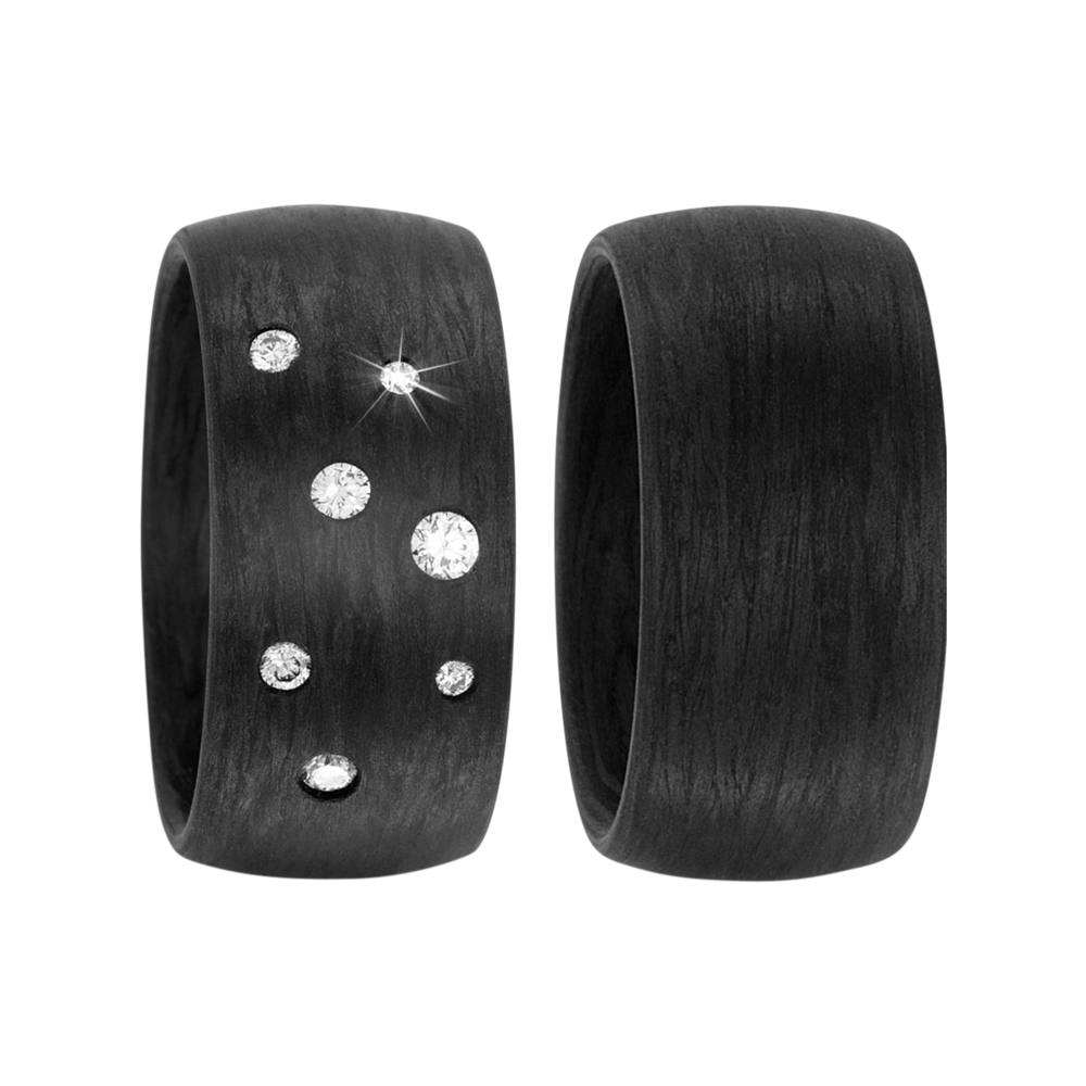 Trauringe aus Carbon mit 0,17 Karat Brillanten