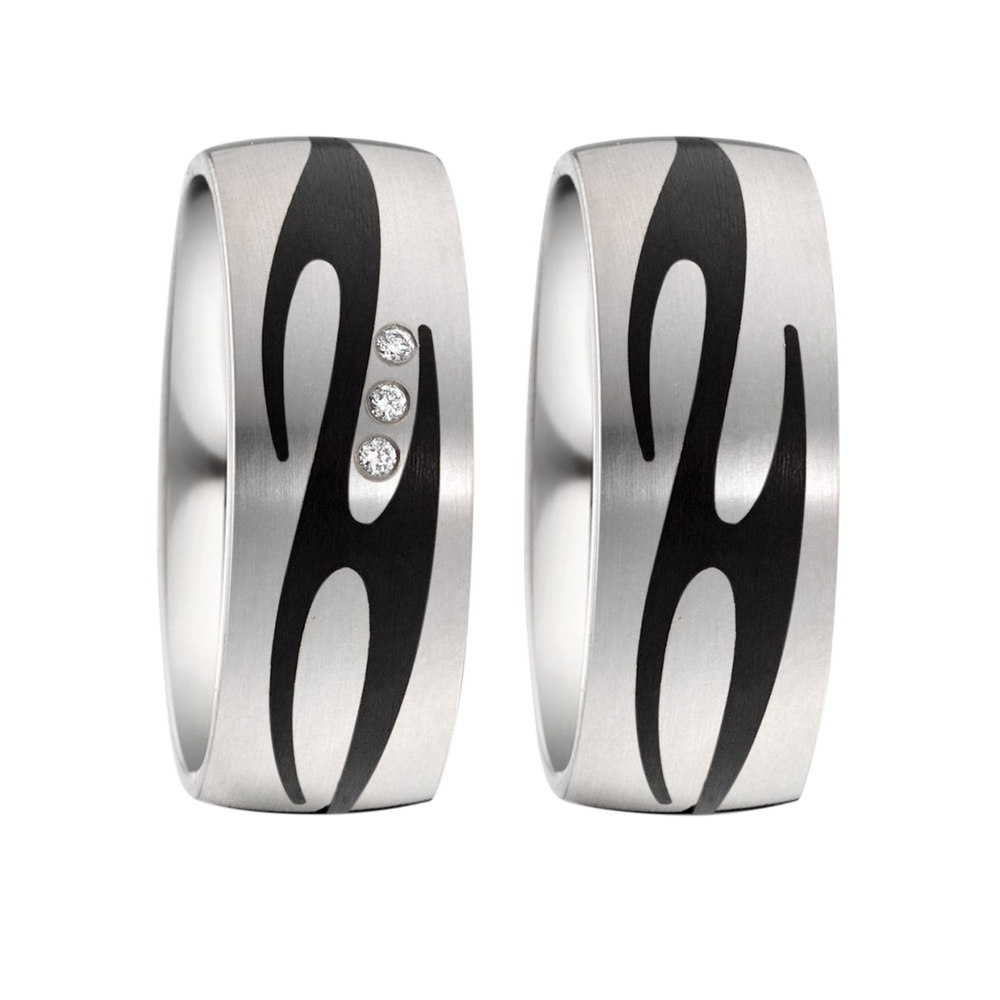 Trauringe aus Titan und Carbon mit 0,024 Karat Brillanten
