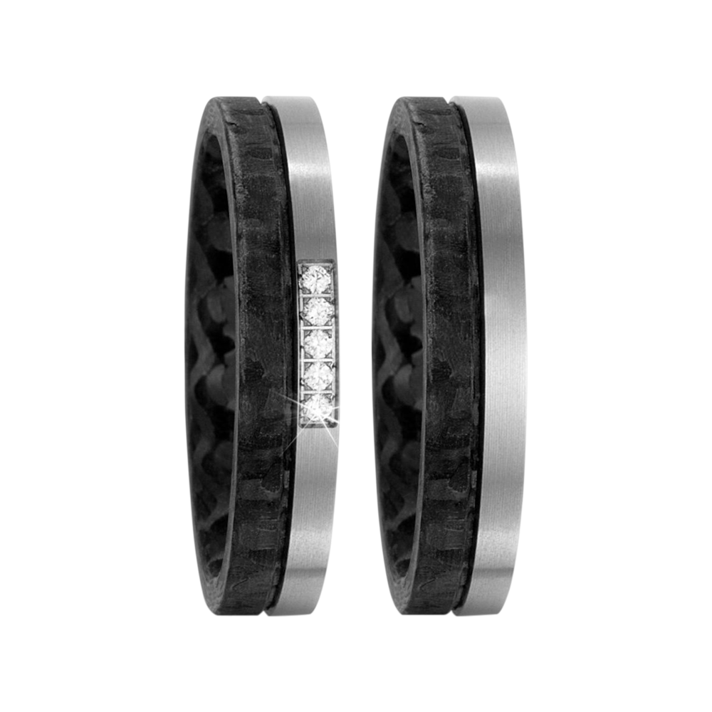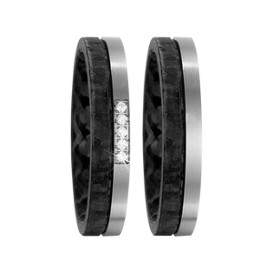 Trauringe aus Titan und Carbon mit 0,05 Karat Brillanten