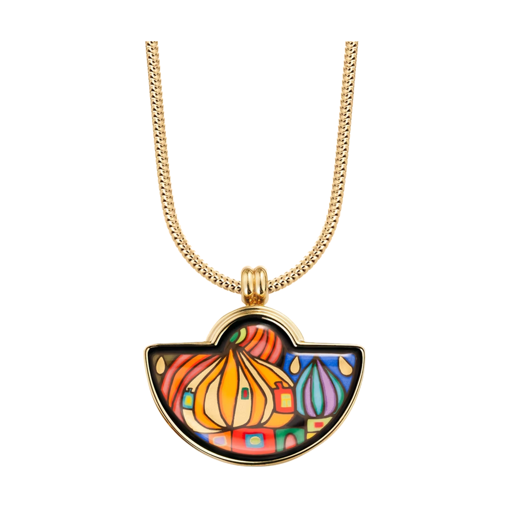Eine Anhängerform mit Charakter: Der unverwechselbare HALBMOND in der kleineren Version lässt die einzigartigen Feueremail-Designs auf seiner grosszügigen Oberfläche erstrahlen.