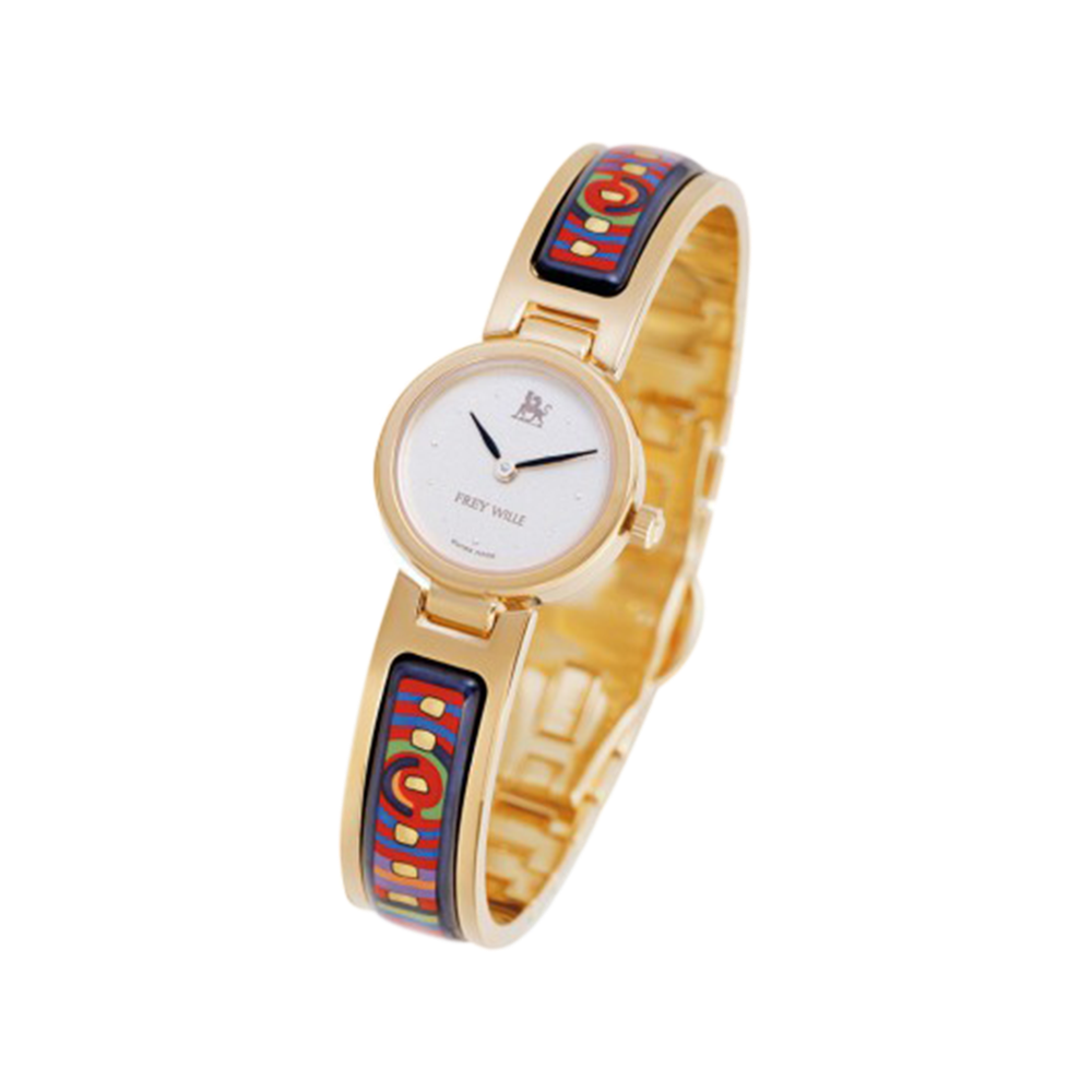 Gehäuse und Armband aus Feueremail/24 Karat Gold-Dekor, Zifferblatt/weiss, 3,0 bar (30,0 m), Hommage à Hundertwasser - Spiral of Life