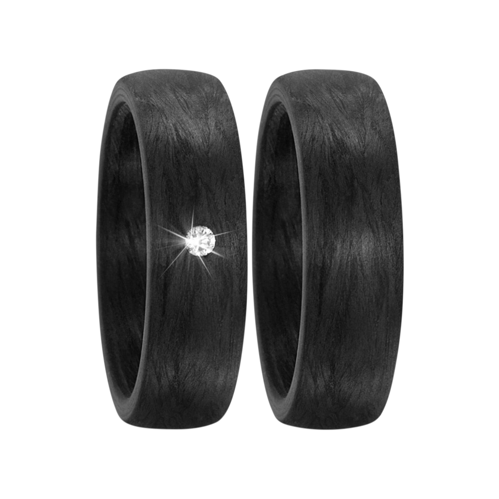 Trauringe aus Carbon mit 0,03 Karat Brillant