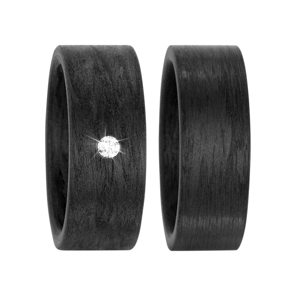 Trauringe aus Carbon mit 0,05 Karat Brillant