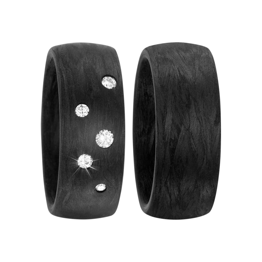 Trauringe aus Carbon mit 0,14 Karat Brillant