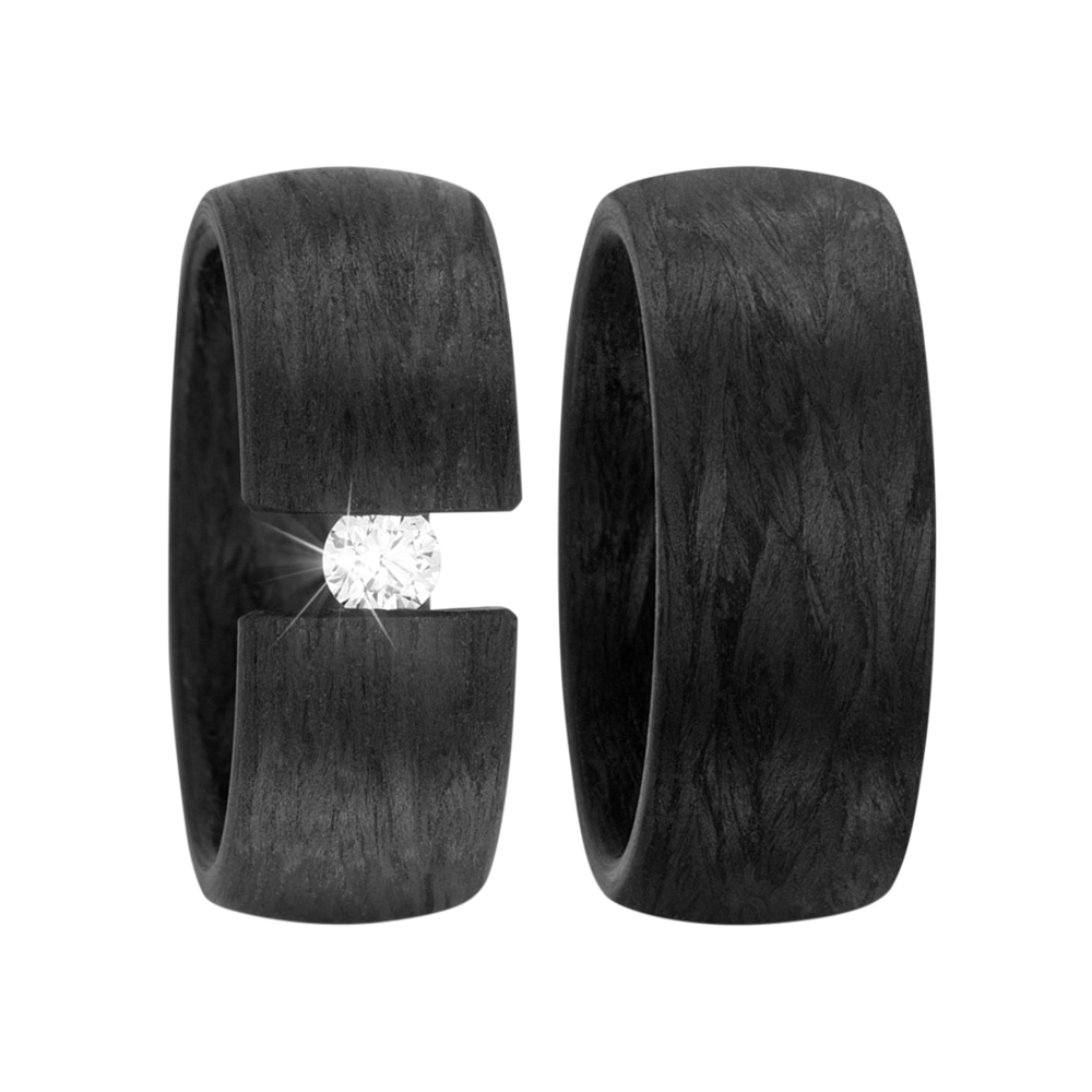 Trauringe aus Carbon mit 0,15 Karat Brillant