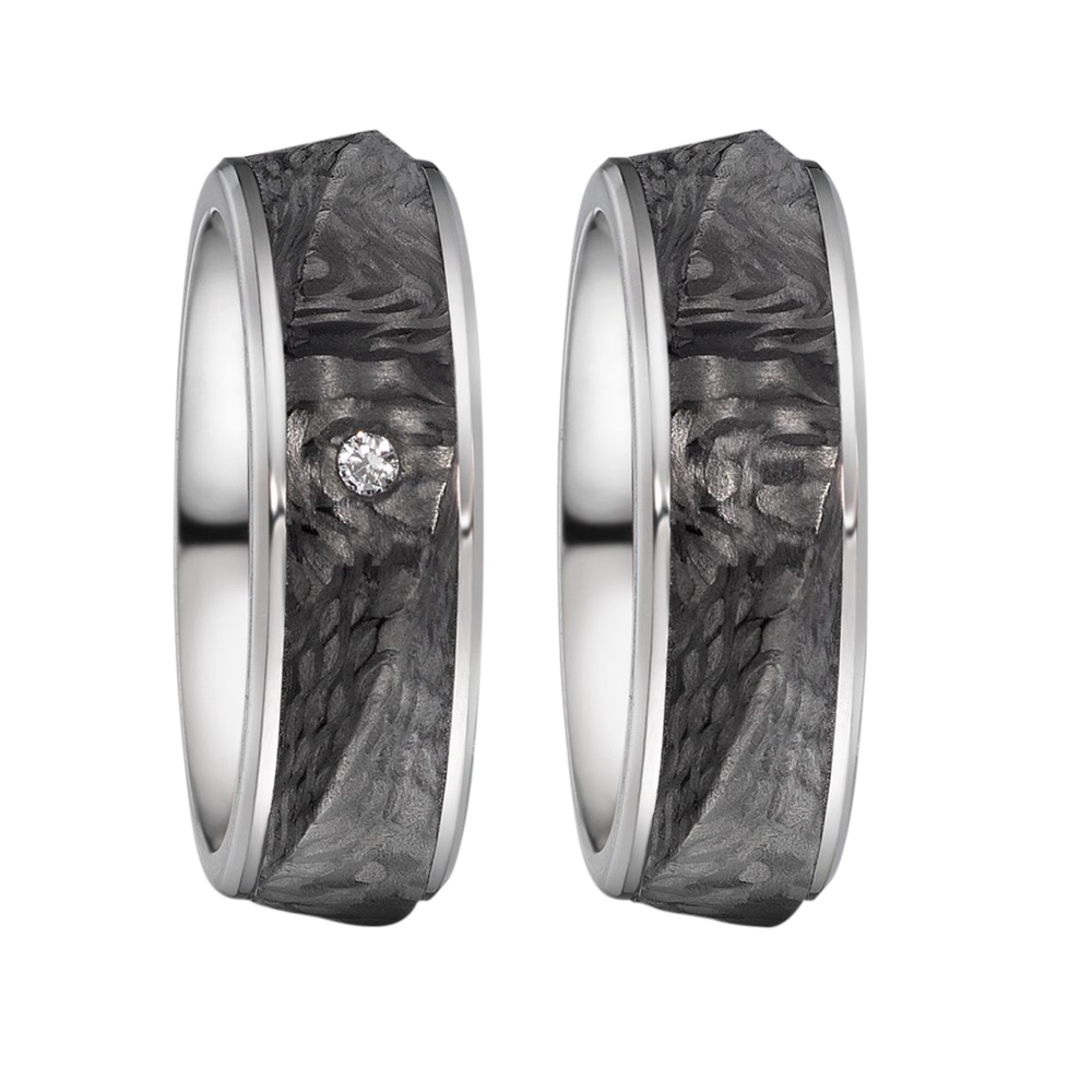 Trauringe aus Titan und Carbon mit 0,03 Karat Brillant