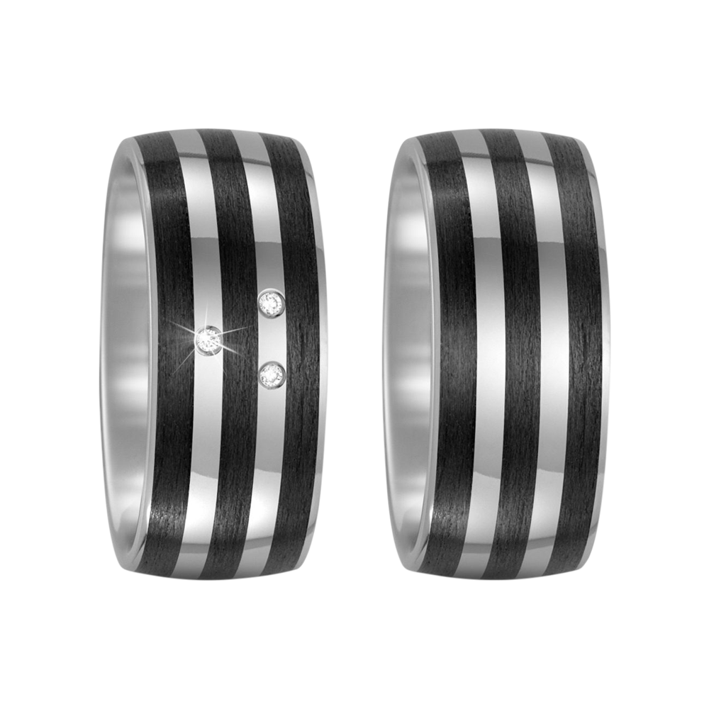 Trauringe aus Titan und Carbon mit 0,03 Karat Brillanten